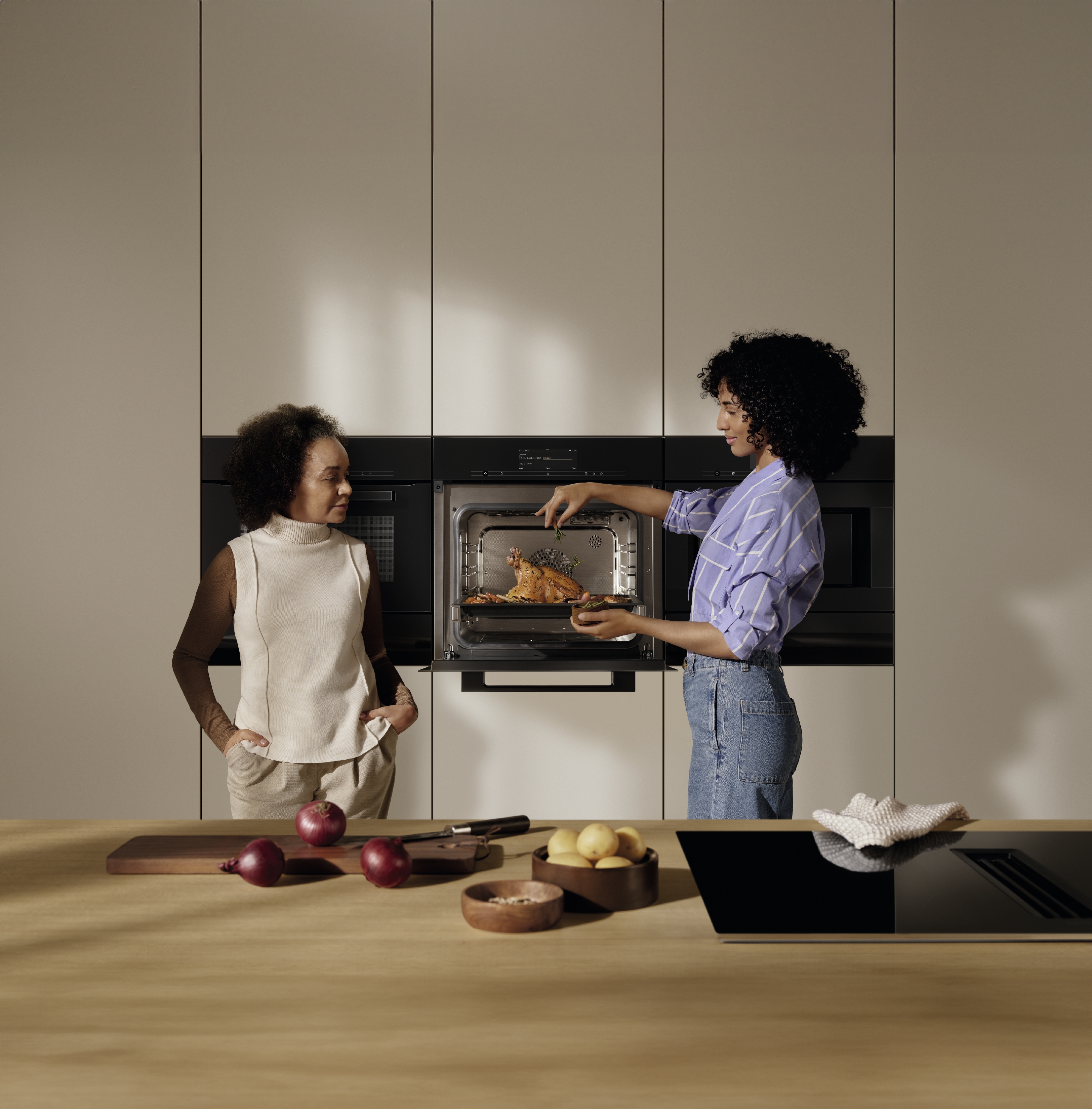 Mattschwarze Oberflächen sind zeitlos-elegant und lassen sich mit nahezu jedem Wohnstil kombinieren. Bei Miele finden Sie jetzt eine komplett neue Einbaugeräteserie in edlem Obsidianschwarz matt. Sie umfasst Backöfen, Backöfen mit Mikrowelle, Dampfbacköfen, Wärme- bzw. Vakuumierschubladen, Einbau-Kaffeevollautomat sowie Weinlagerschrank. Ergänzt werden diese Geräte um Induktionskochfelder, Dunstabzugshauben und Frontverkleidungen für Geschirrspüler mit Knock2Open-Technologie.